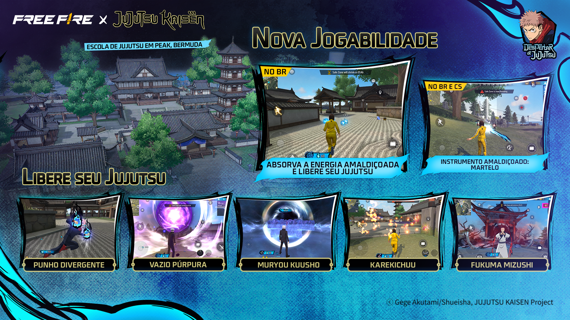 - Vazio Púrpura, Punho Divergente, Karekichuu, Fukuma Mizushi e Muryou Kuusho disponíveis na Loja do CS e nos Airdrops Cibernéticos.