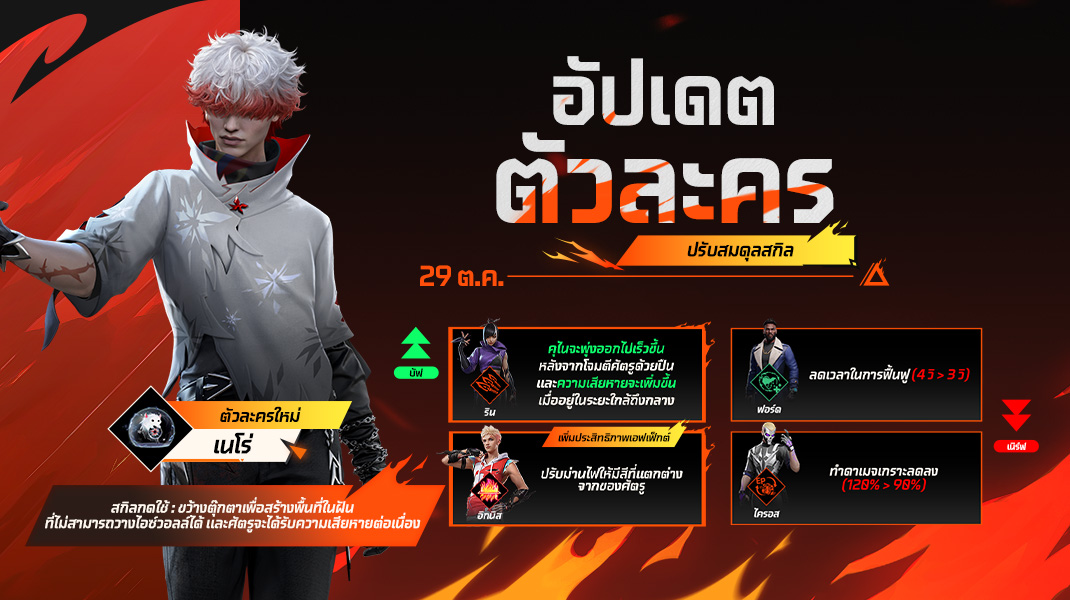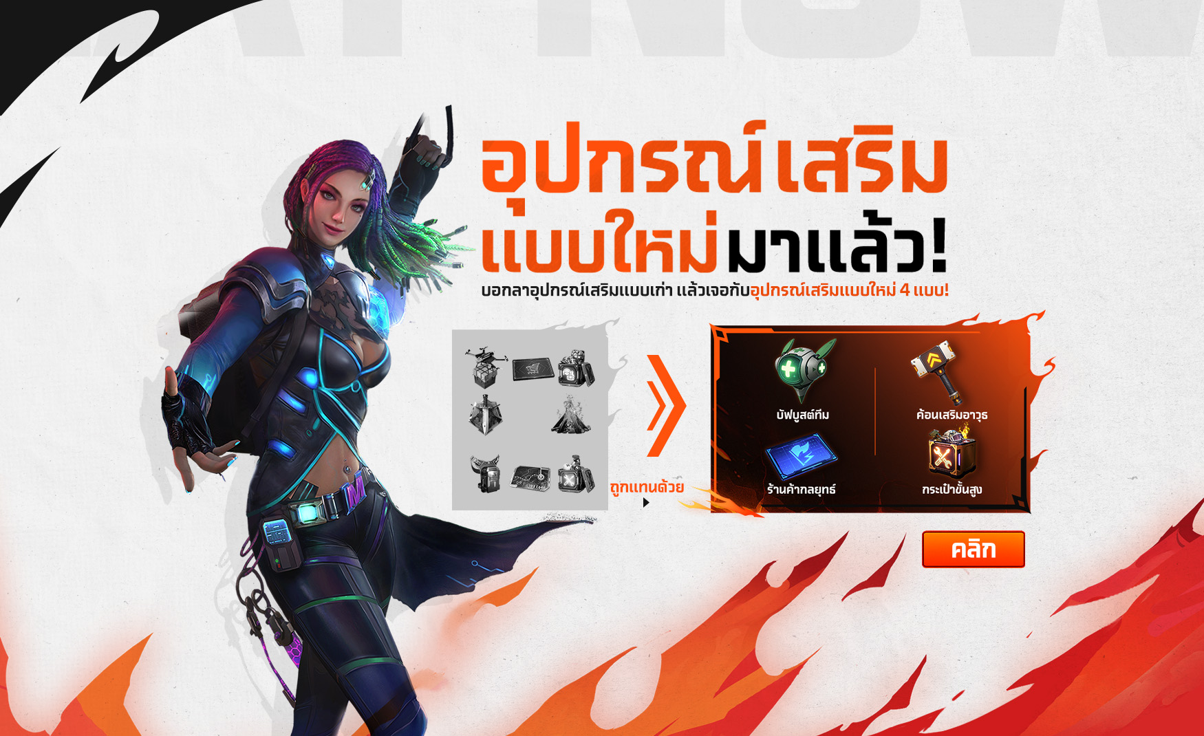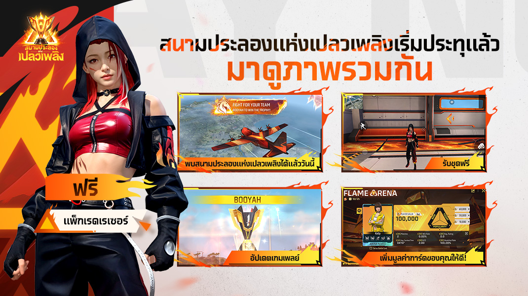 - ร้านค้า 4V4, พื้นที่เกิด และแอร์ดรอปไซเบอร์ทั้งหมดจะมีธีมสนามประลองเปลวไฟ