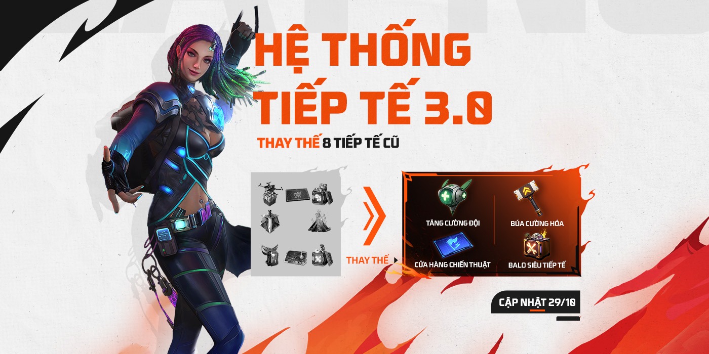 Bản cập nhật ngày 29 tháng 10 sẽ mang đến 4 tiếp tế hoàn toàn mới để thay thế cho 8 tiếp tế cũ, gia tăng chiều sâu chiến thuật, trở thành trọng tâm của sự kiện Đấu Trường Rực Lửa và giúp người chơi có nhiều cách áp đảo đối thủ hơn trong cả Sinh Tồn lẫn Tử Chiến.