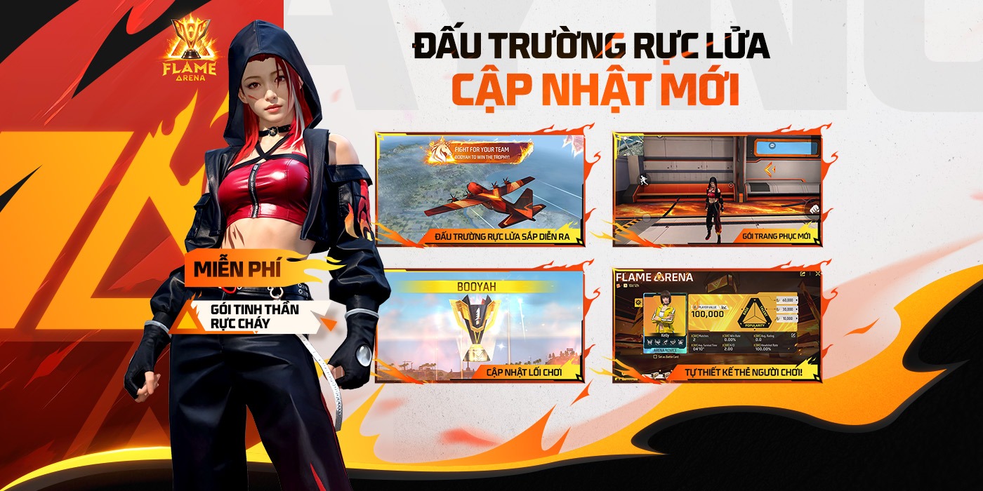Lấy cảm hứng từ đấu trường Esports kịch tính và bùng nổ, Đấu Trường Rực Lửa mang đến chuỗi nhiệm vụ và vật phẩm theo chủ đề tôn vinh các tuyển thủ hàng đầu của Free Fire, cùng hàng loạt tính năng hay ho trong cả Sinh Tồn lẫn Tử Chiến